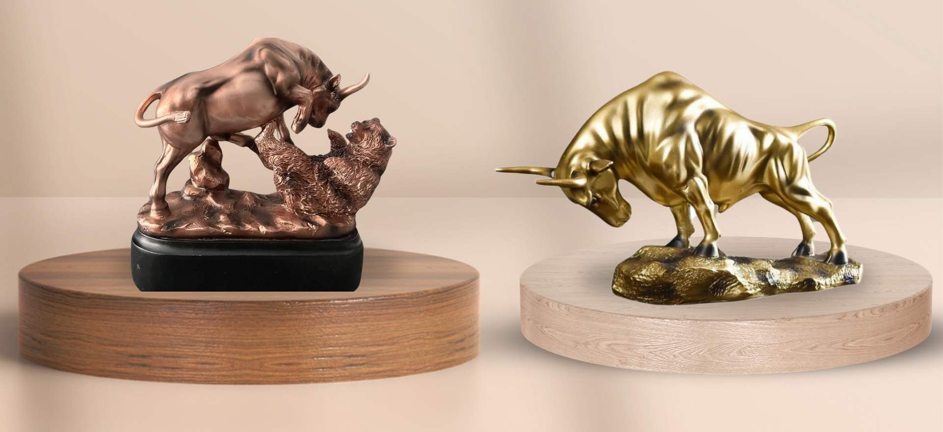 Kişiselleştirilebilir Dekoratif Ayı & Boğa Heykeli | Finans Ofis Masaüstü ve Kişiye Özel Ev Dekor Ürünü